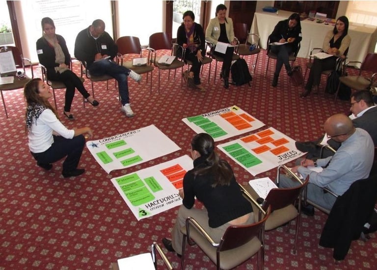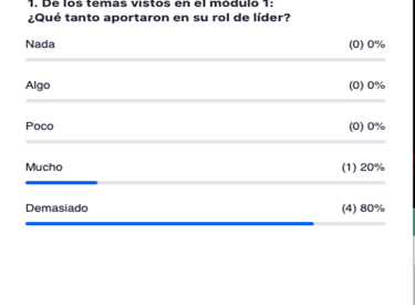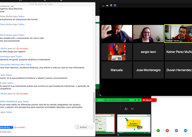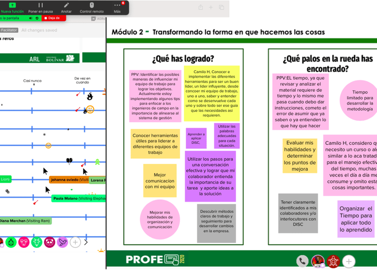 Generamos espacios en donde todos los participantes exponen sus ideas y escuchan posiciones, prácticas, experiencias y pensamientos de los demás, aportando a la ampliación del nivel de conciencia y conocimiento de cada persona. partimos del autodiagnóstico para identificar su punto de partida frente al nivel que les conviene lograr.